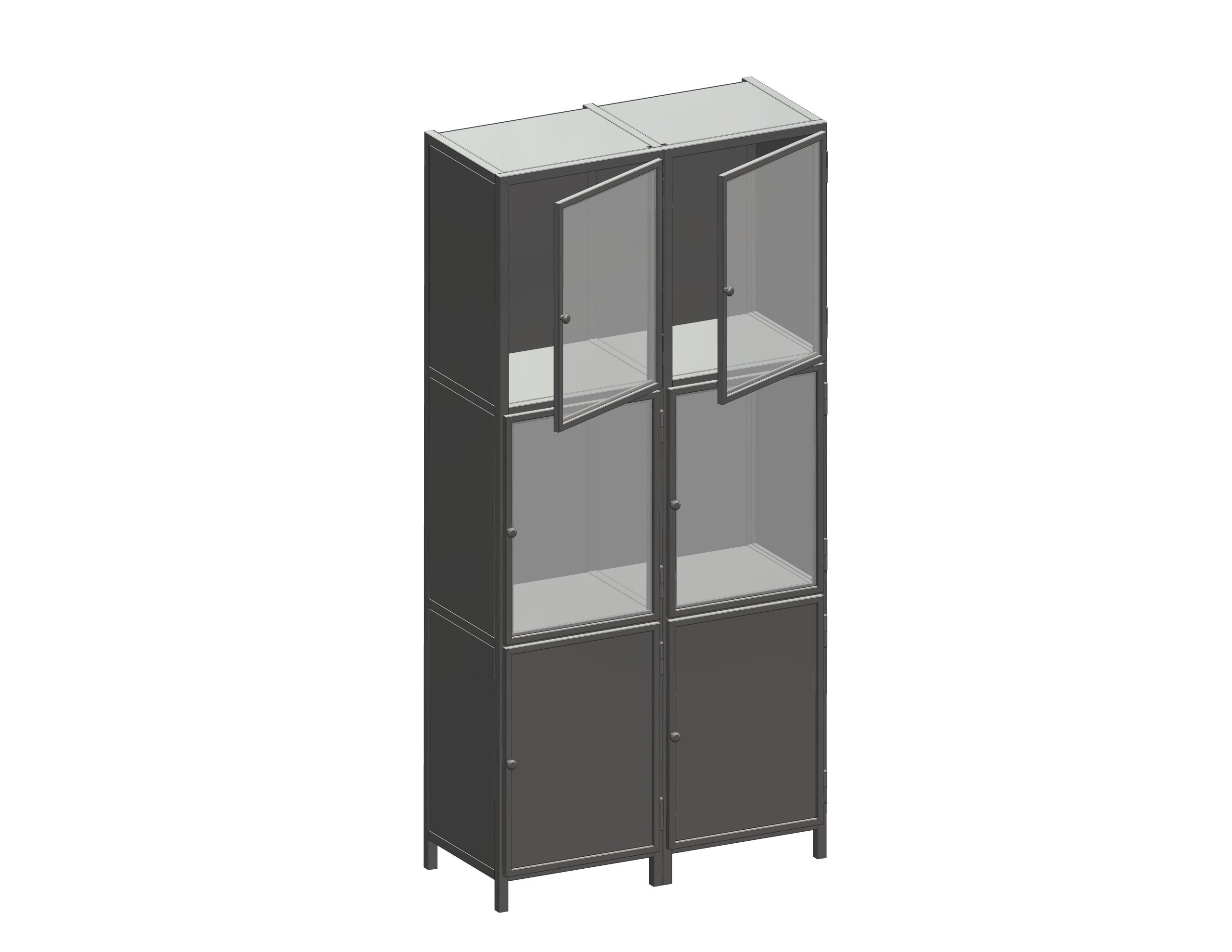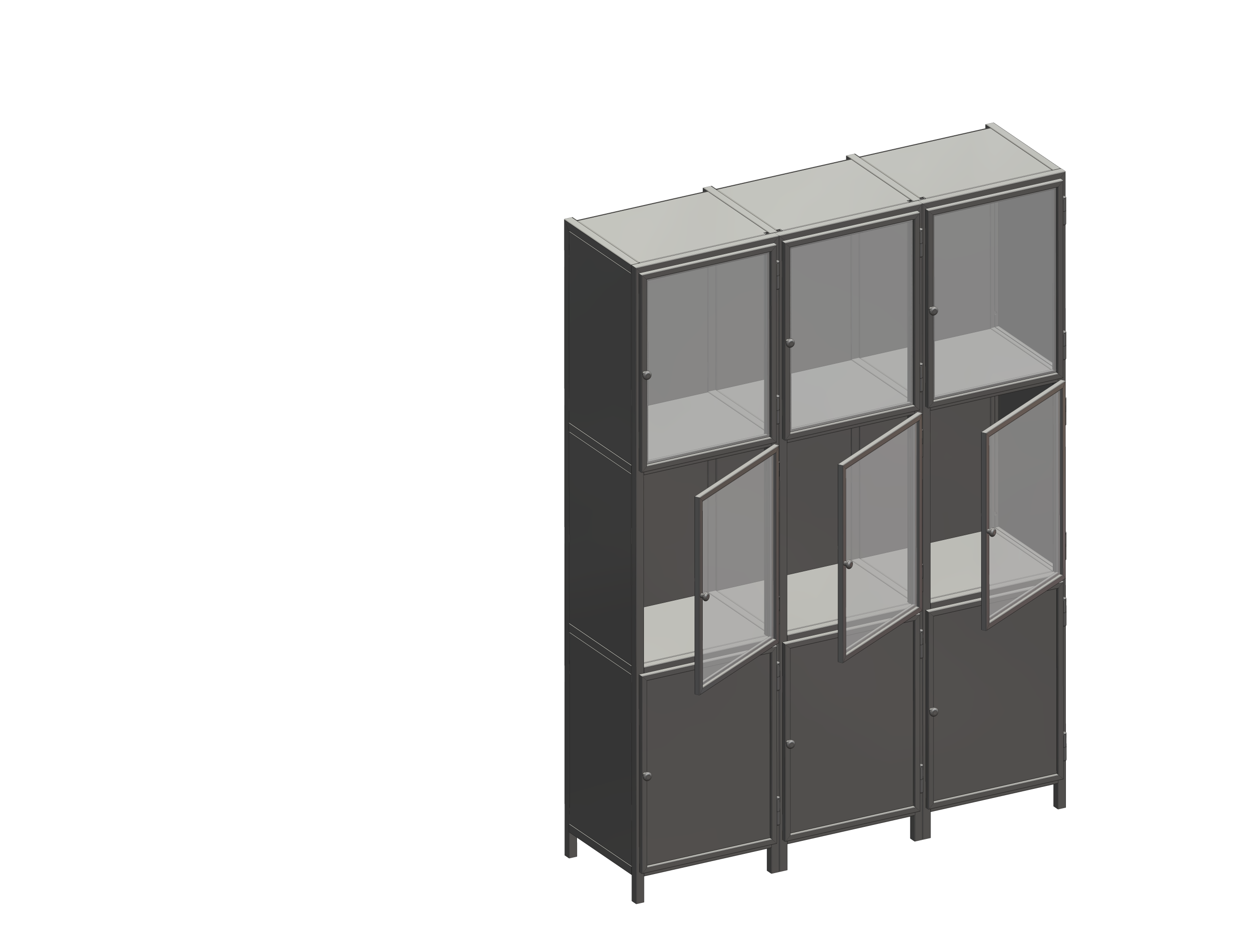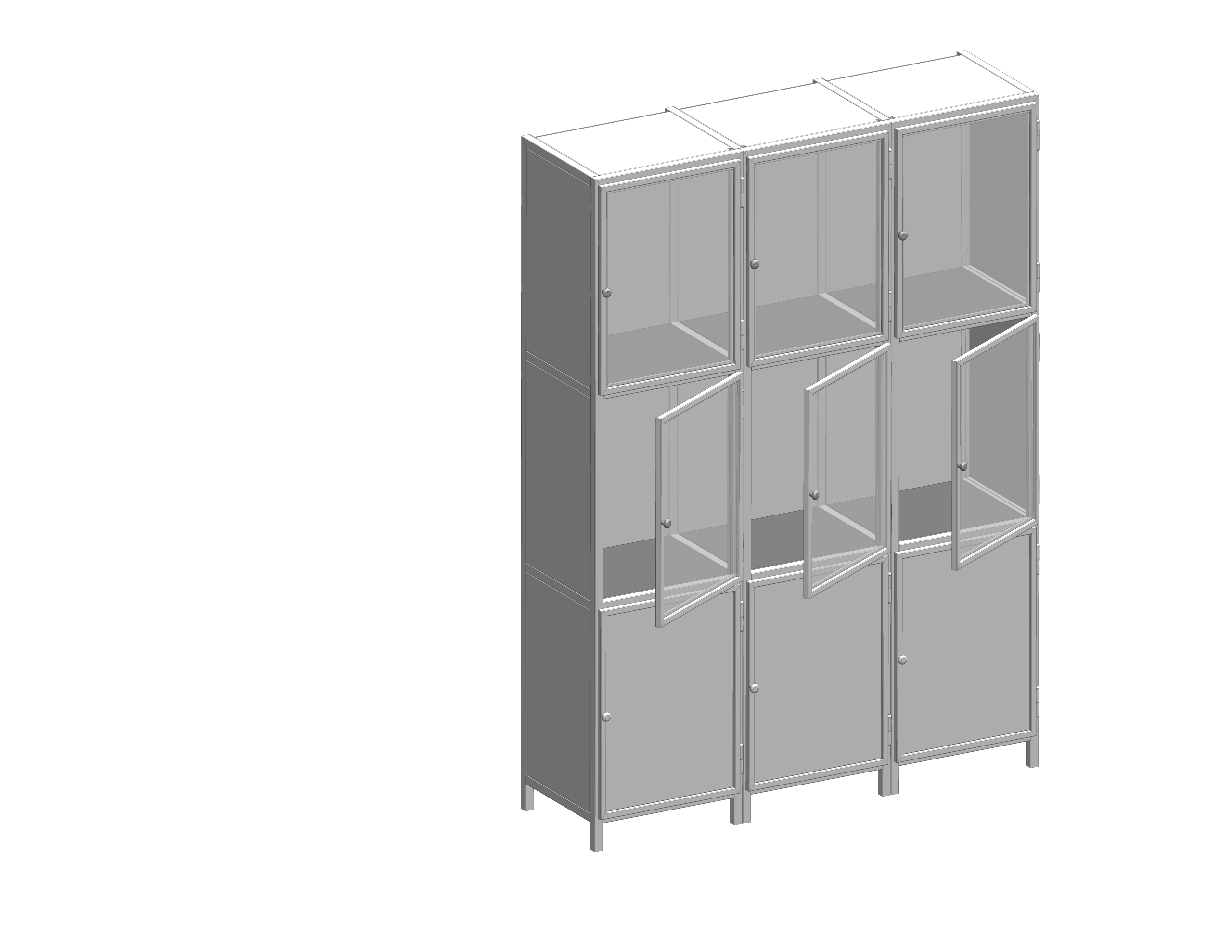 Brandveilige stalen hang vitrine kast met modulaire opbouw, ideaal voor zichtbare presentatie met glas- of dichte deuren en keuze uit RAL-kleuren.