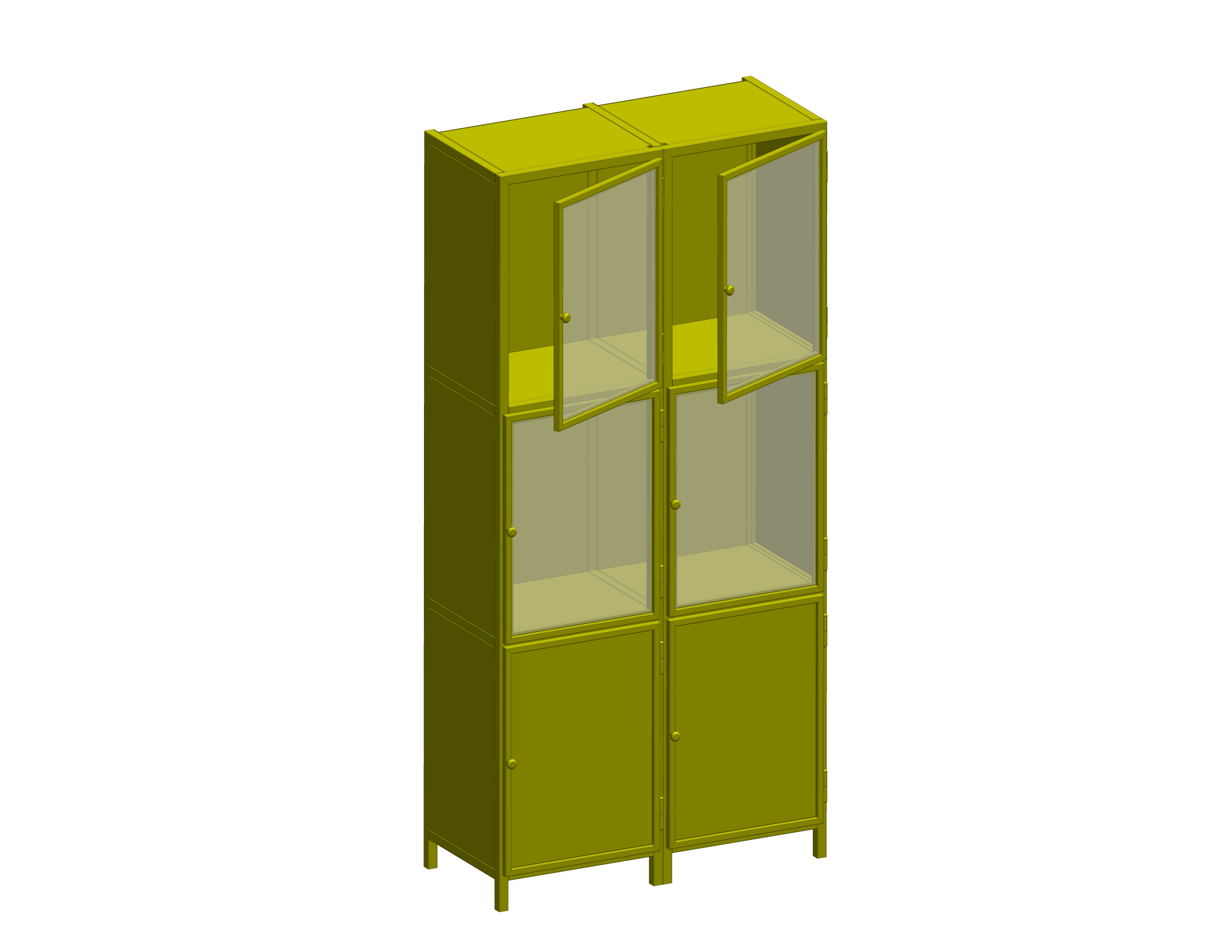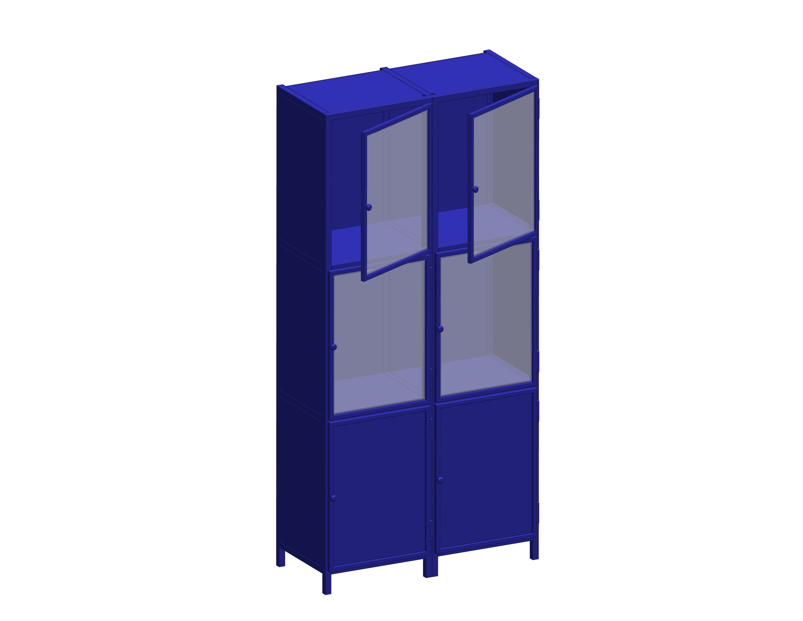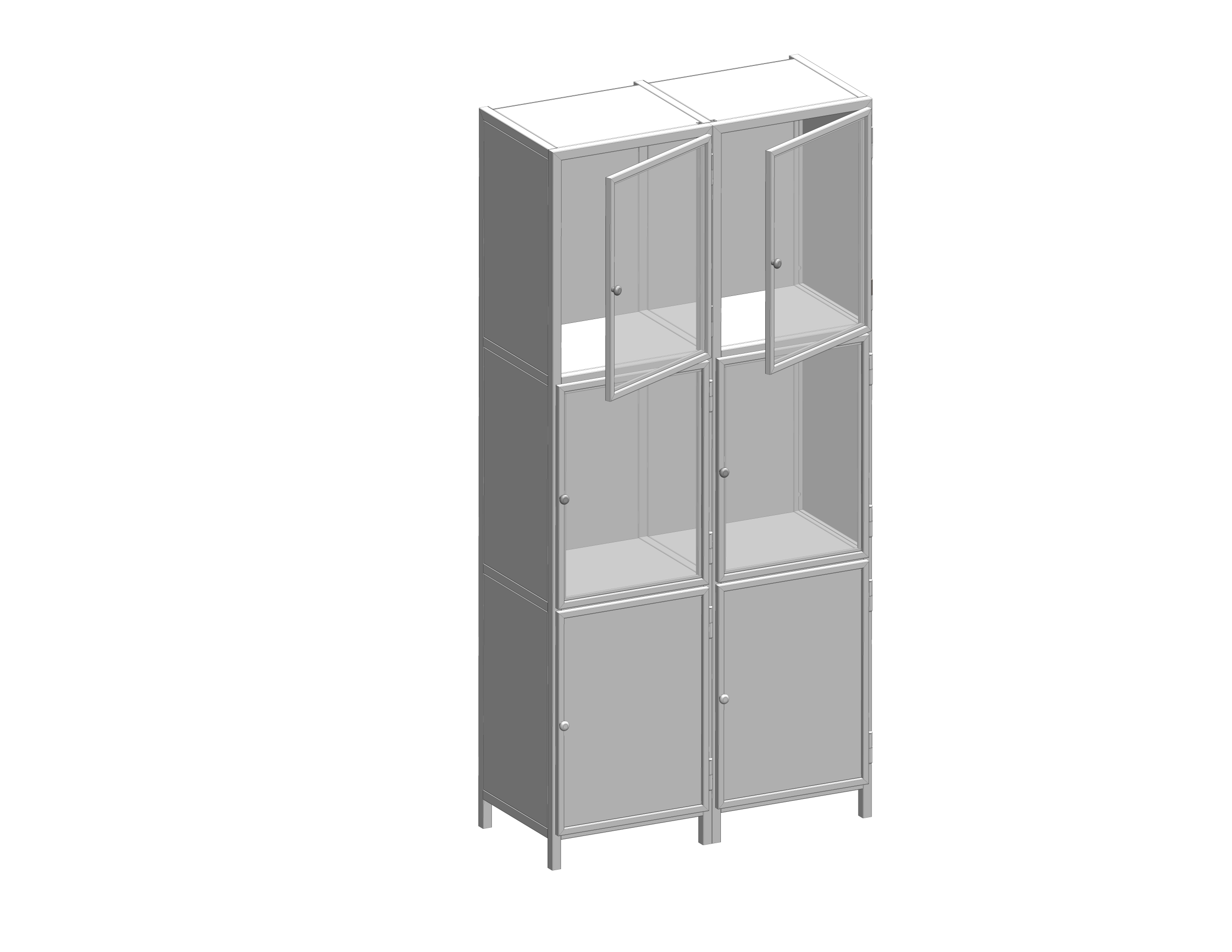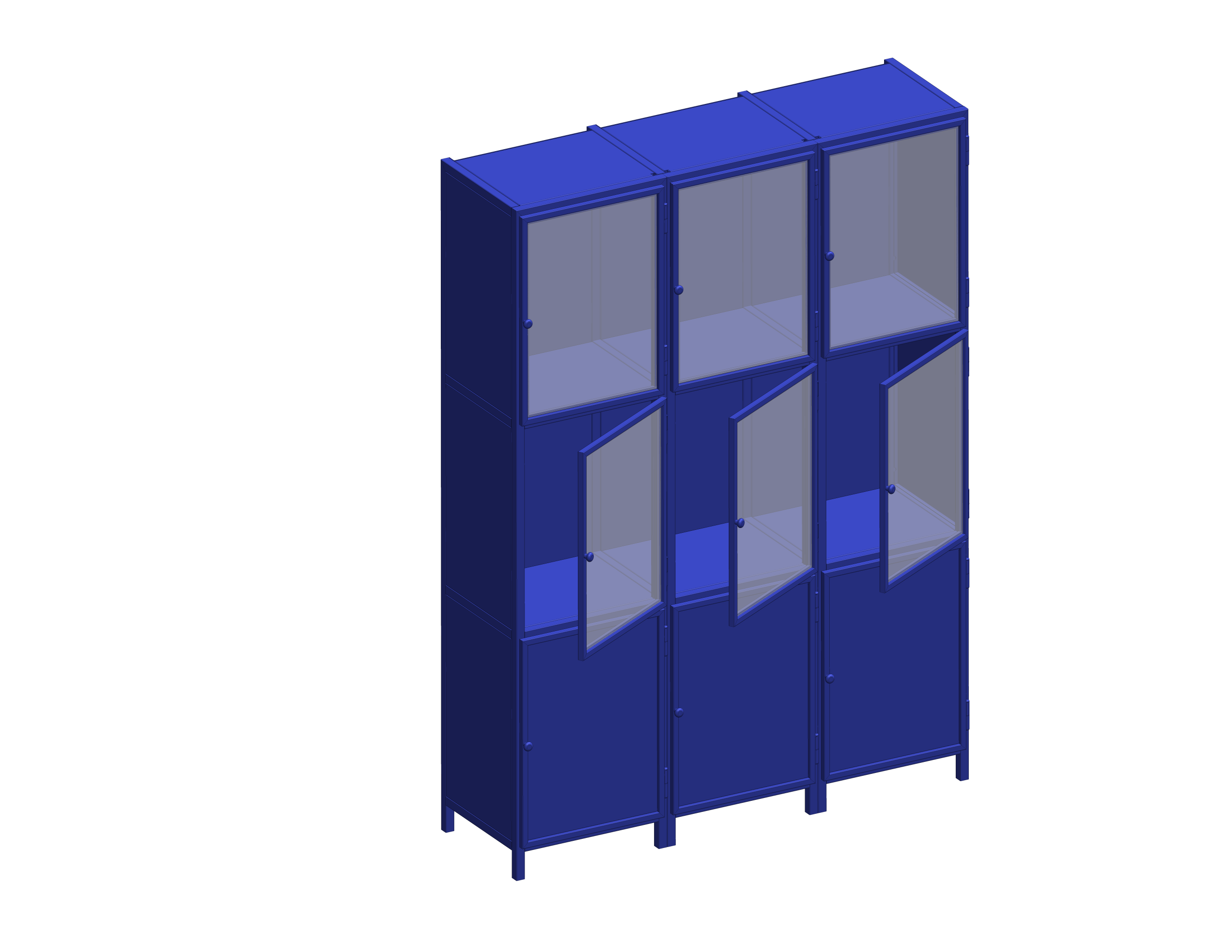 Brandveilige stalen hang vitrine kast met modulaire opbouw, ideaal voor zichtbare presentatie met glas- of dichte deuren en keuze uit RAL-kleuren.