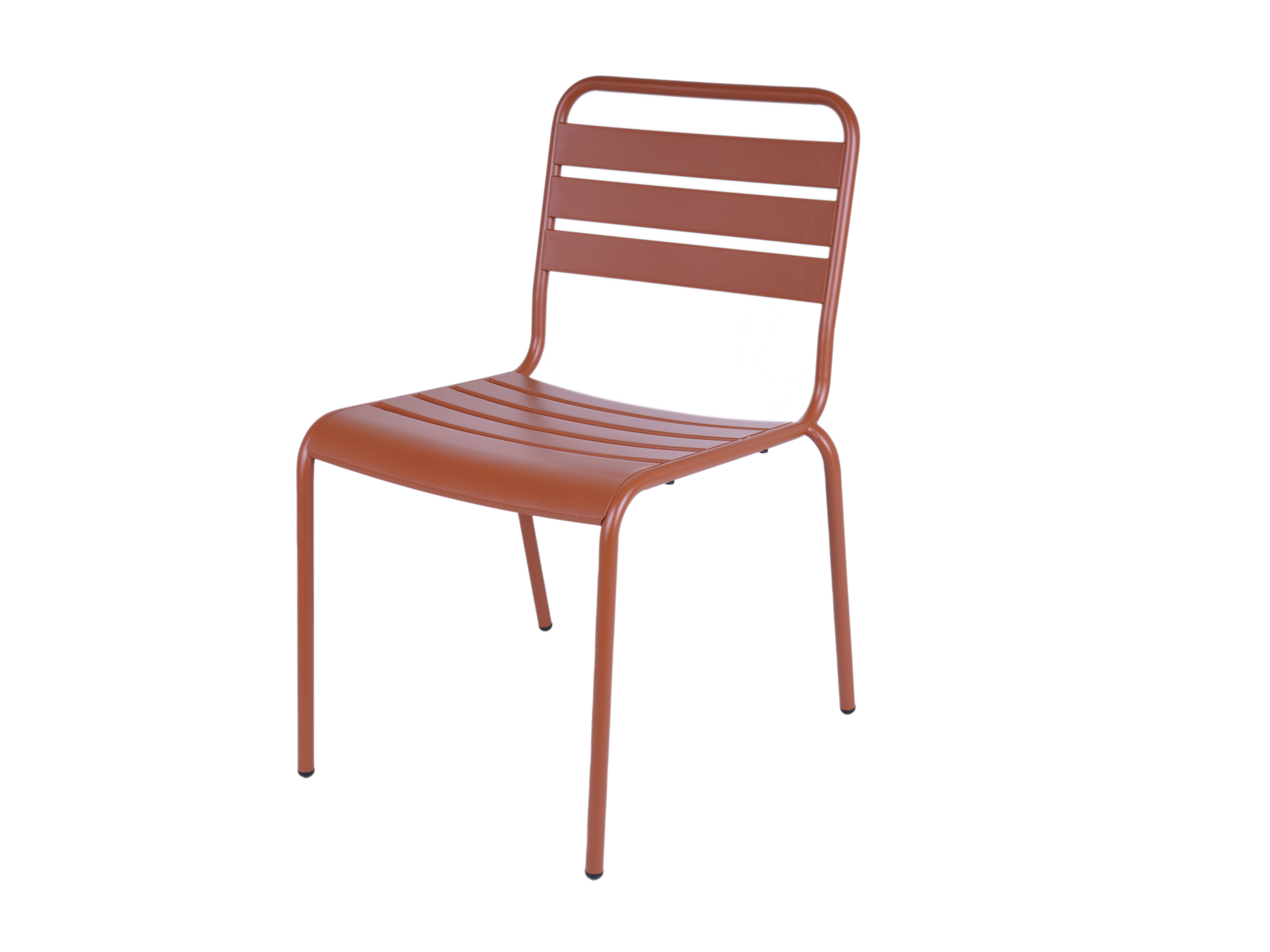 De stoel is gemaakt van metaal met een chique matte poedercoating, verkrijgbaar in meerdere opvallende en neutrale kleuren. De coating met subtiele zandstructuur draagt bij aan een luxe look én maakt krasjes minder zichtbaar, waardoor de stoel langer mooi blijft bij intensief gebruik. Dankzij het lichte, sterke frame is hij toch stapelbaar, wat opslag en schoonmaken eenvoudiger maakt. Voor extra comfort zijn er optionele zitkussens leverbaar.